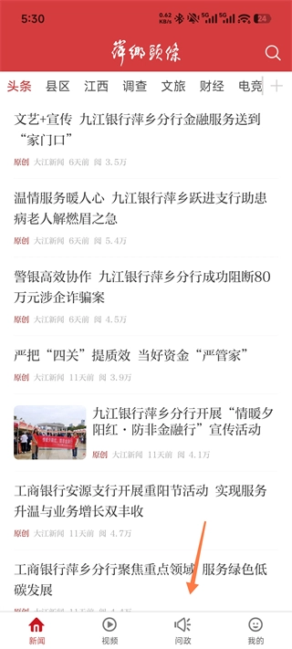 1、打开萍乡头条App,进入首页后,能看到各类新闻头条内容,从中找到【问政】板块并点击进入。
