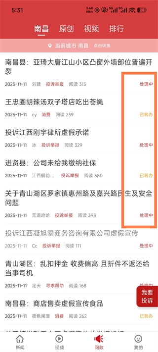 4、提交成功后,相关部门会及时受理并处理,你也可以在问政板块查看其他用户的诉求以及处理进展。