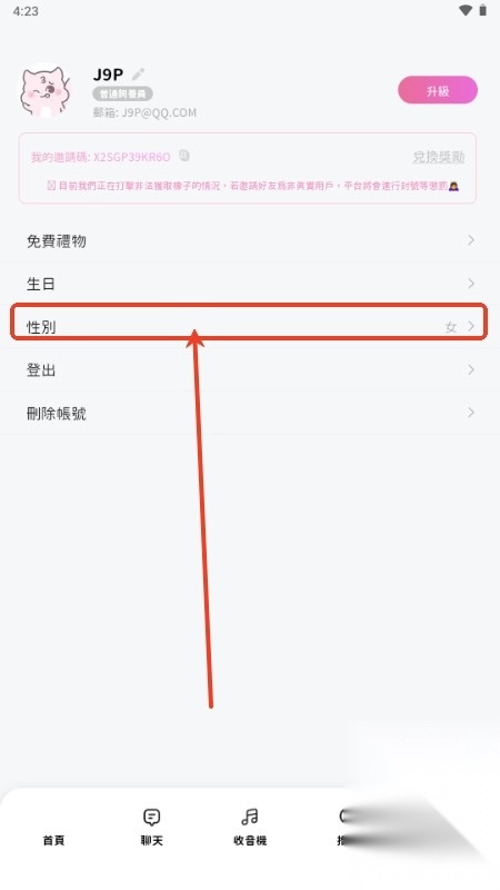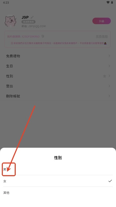 2、点击性别;