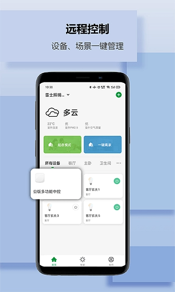 雷士智家手机版是专门为智能家居设计的应用,通过它用户能够远程控制家里的智能设备,不仅可以一键管理各类场景模式,还能和亲友共享设备使用权限。