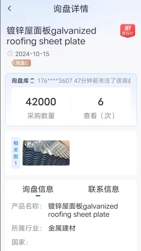 展示了询盘的详细信息,用户能够随时查看对应的采购数量。