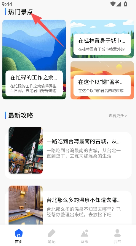 3、浏览热门景点与最新攻略板块,以获取更多旅游灵感。