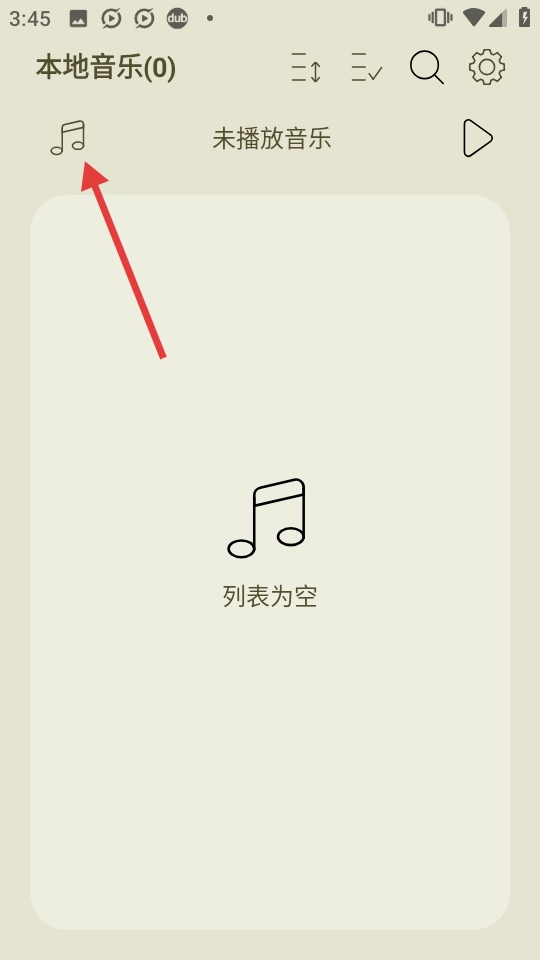 2、在本地音乐页面,点击音符图标进入相关界面。