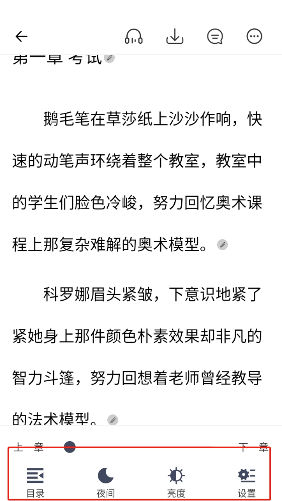 5、轻点屏幕任意区域即可调出菜单,通过该菜单能够对阅读页面进行相关设置。