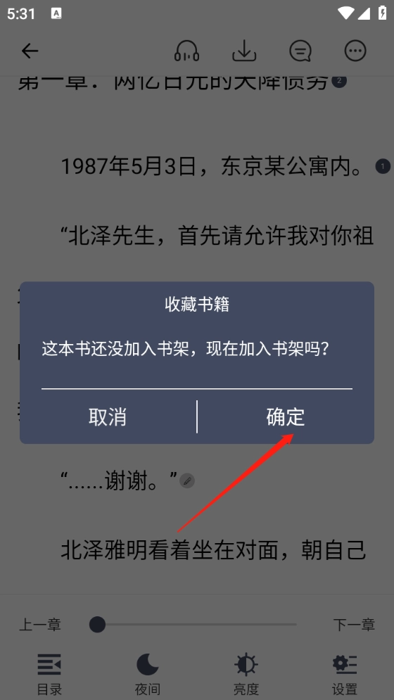 1、打开你喜欢的小说并进入正文页面后,点击左上角的返回按钮。