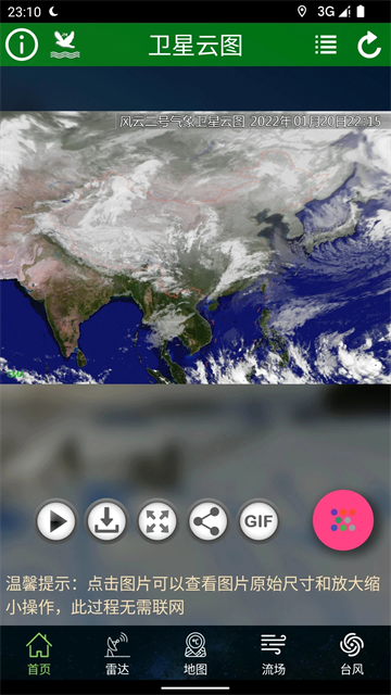 3、实时获取中央气象台的数据,从而得到当前以及此前中国及周边上空的云图。