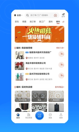 服装圈是专注于服装行业的综合交易服务平台软件,主要为行业内用户提供信息发布与订单对接服务。用户能借助该平台发布工厂相关信息,从而高效匹配到合适的服装订单;同时也可以发布服装设备的出租或转让信息,便于其他有需求的用户快速找到所需设备。此外,平台还提供面辅料交易服务,用户不仅能便捷查找所需的面料和辅料,还能通过拍照上传的方式,利用平台数万数据资源库识别同款面料。