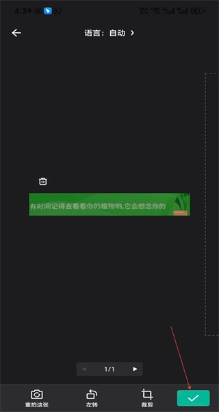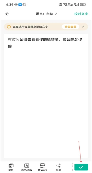 4、文字提取结束后,查看识别出来的内容,确认没有问题后点击底部的对勾按钮,这样就完成了整个识别流程。