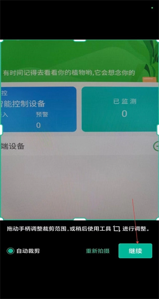 1、启动软件后,进入截图界面,查看设备页面的截图内容,点击继续按钮进入裁剪步骤。