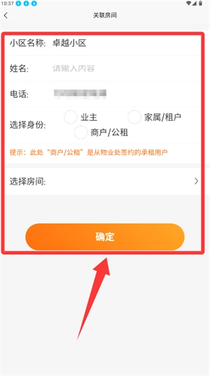 2、填写信息并选择身份房间,点击确定完成绑定。