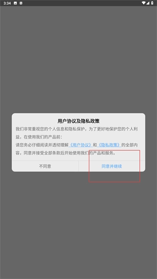 1、仔细阅读《用户协议》与《隐私政策》的具体内容后,点击【同意并继续】按钮,即表示您确认同意相关协议,进而可使用本产品及服务。