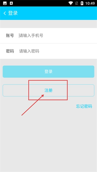 3、进入登录页面后,需要填写【账号-请输入手机号】和【密码-请输入密码】这两项内容;如果还没有账号,点击【注册】按钮即可进入注册页面。