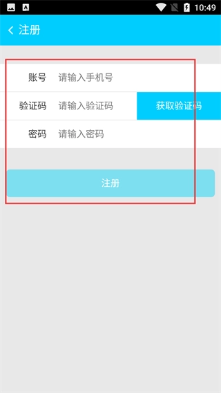 4、在注册页面,按顺序填写【账号-请输入手机号】、【验证码-请输入验证码】、【密码-请输入密码】这三项内容,之后点击【注册】按钮,即可完成账号注册操作。