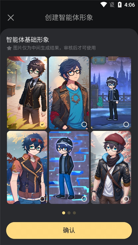 6. 在智能体基础形象中选择一张并点击“确定”。