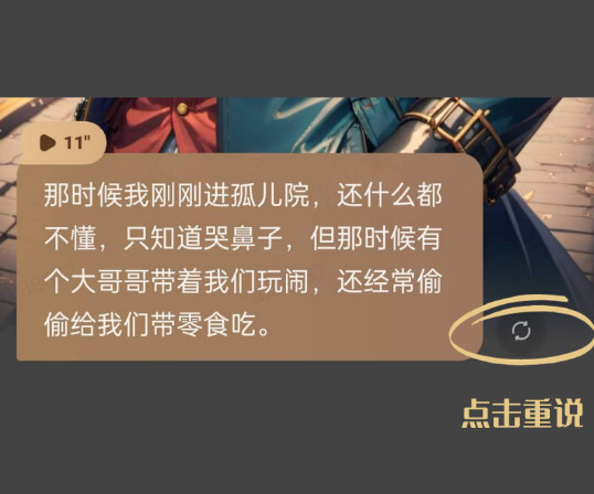 03 重说点击消息框右下角的【转圈圈按钮】让TA重新生成回复。