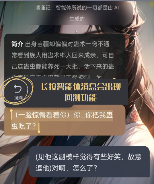 04 回溯让对话回到之前的某个节点。选择想要回溯到的消息【长按】,点击【回溯】,就会删除这条消息之后的所有内容。