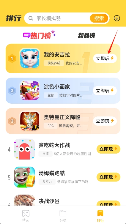 3、引擎:找到目标游戏后,用户可直接点击“立即玩”按钮,随后在弹出的窗口中进行点击操作。