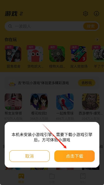 2、浏览与搜索:用户能够在分类界面里依据分类来浏览游戏,像休闲游戏、角色扮演类游戏等。