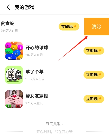 5、游戏管理:用户可在“我的游戏”页面中对已游玩过的游戏进行管理,支持清除等相关操作。