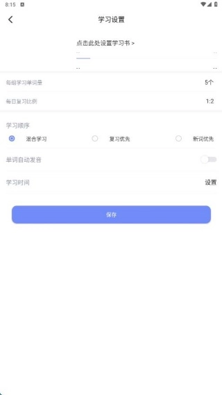 2、可自定义学习的书籍内容,并能设定学习顺序、每日背诵单词数量等相关参数。