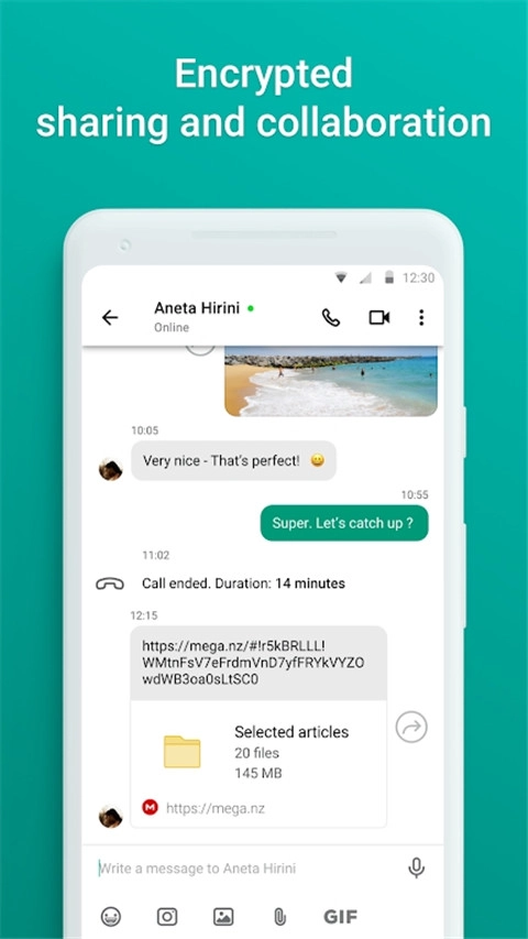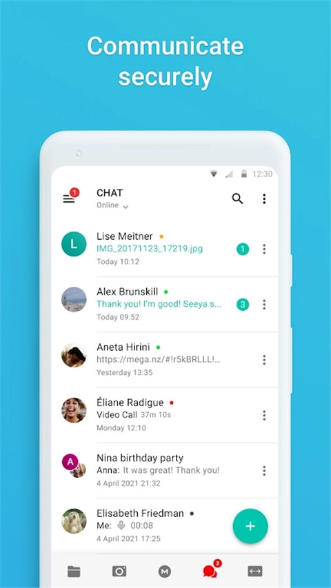 使用MEGA的安全聊天功能,可对用户通信进行端到端加密,其中包含完全私密的视频通话与音频通话。