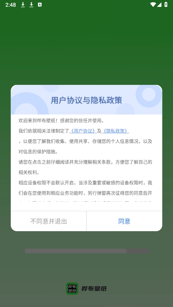 1、安装哔布壁纸,同意相关的政策与协议之后打开。