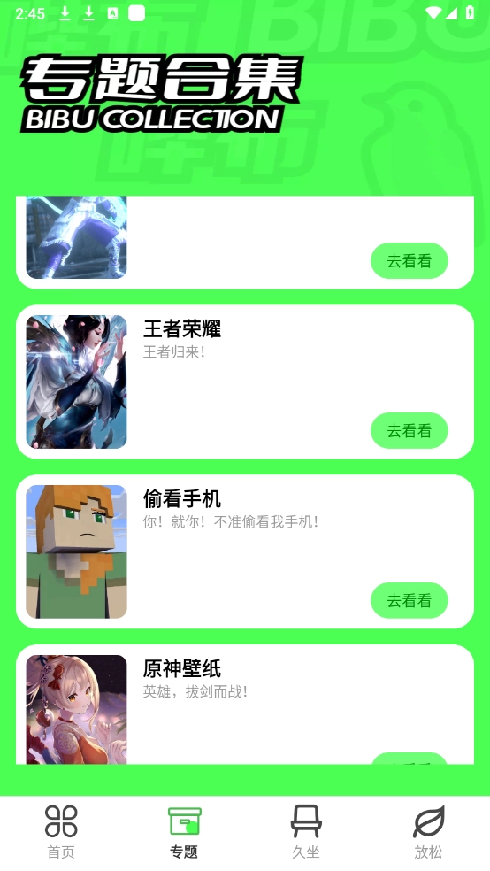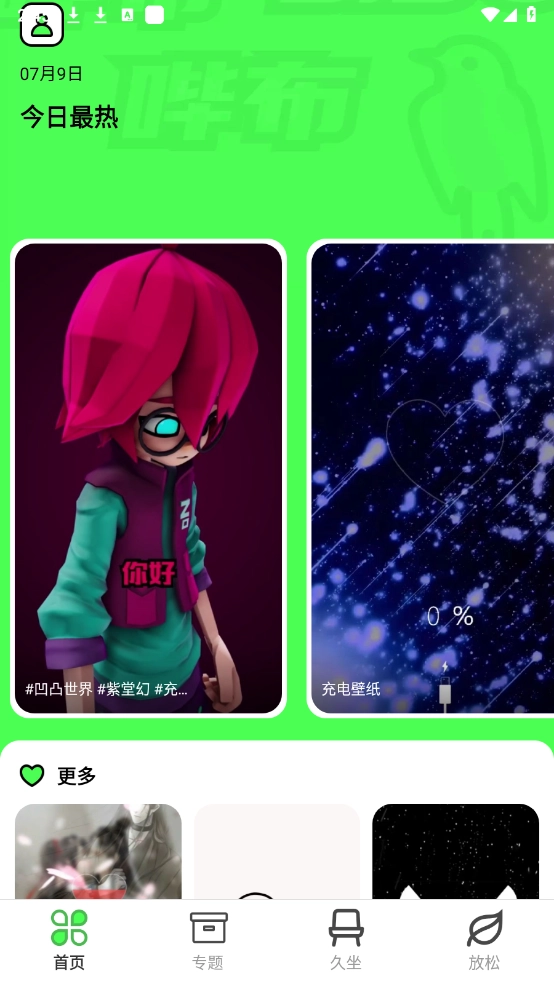 进入软件后,首页和“专题”板块里汇聚了大量热门壁纸资源,涵盖动态与静态两种类型。