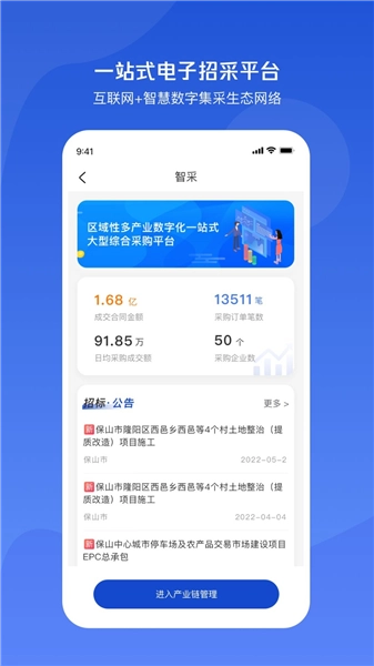 3、通过智采智销等功能模块,参与产业交易操作。