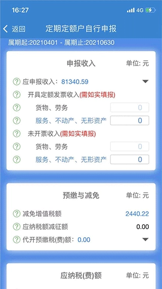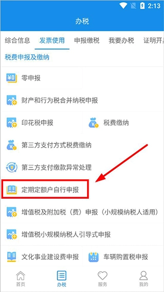 3、进入申报页面后,用户可使用更正和申报两项功能服务,点击“申报”按钮即可进入定期定额申报页面。