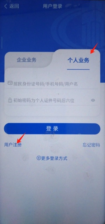 在电脑端电子税务局的登录界面,选择“自然人业务”选项后,在页面左下角能找到“用户注册”入口,通过该入口可完成实名认证操作。