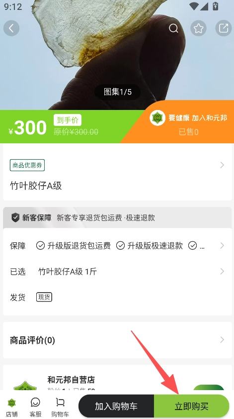 2、点击目标商品进入详情页查看信息,选好对应规格后点击立即购买。