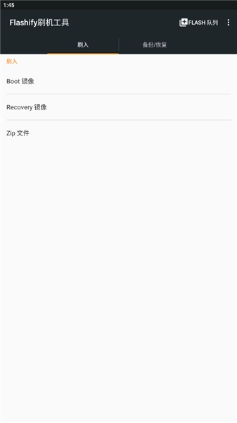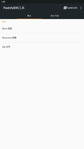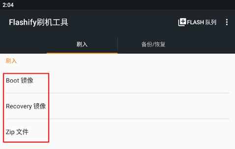 1、打开flashify应用,选择点击“Boot镜像”“Recovery镜像”或者“Zip镜像”这几个选项;