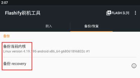 3、进行备份恢复操作时,可选择“备份当前内核”或“备份recovery”这两个选项。