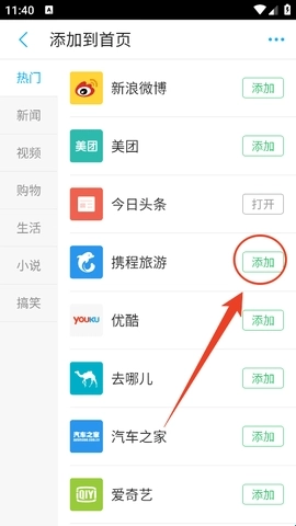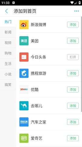 2、接着就能看到这里罗列着不少常用网站,点击网站右侧的“添加”按钮,就能一键将其添加到首页啦。