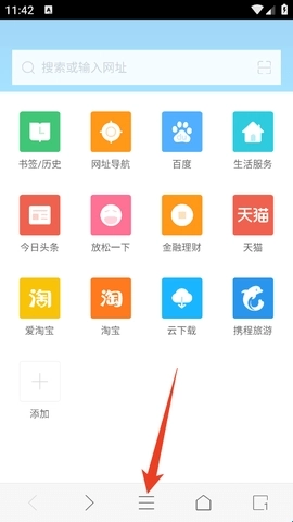 1、进入到浏览器首页后,点击下方的三个杠图标。