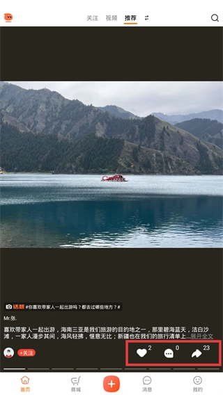 在首页的“推荐”板块里,能够查看内容的动态更新,还可以借助底部的按钮开展互动操作,比如点赞、评论以及在评论区进行分享。