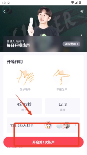 1、启动软件后,首先完成声线测试环节,系统会依据你的音域范围与音色特点,为你推荐适配的练习曲目及课程内容。