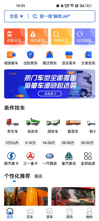 卡车世界是专为卡车车主与买家打造的汽车交易软件,有牵引车、自卸车等七大类及细分商用车型,车源信息真实可靠。运用互联网技术,提供车辆登记、信息发布、资讯分享等服务。支持按品牌、价格精准筛选车源,整合行业资源,及时推送交易信息。还设有真实车源展示平台,提供信用担保、汽车保险等线下服务,全方位解决二手车交易难题,可在本站免费使用。