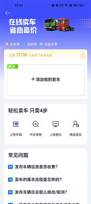 1、卖车无忧:一键快速发车,0成本发布,高效匹配买家,闲置车辆极速变现。