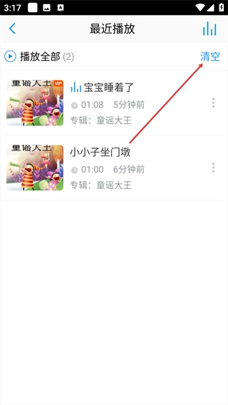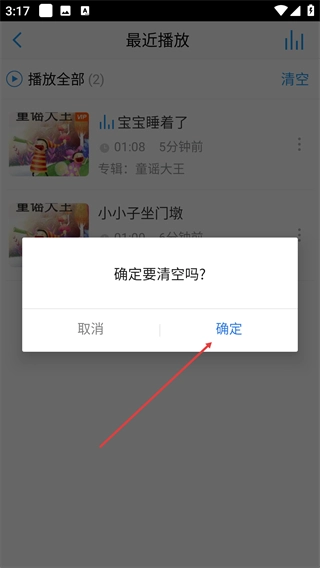 3、点击右上角【清空】按钮,触发清空播放记录的确认弹窗。