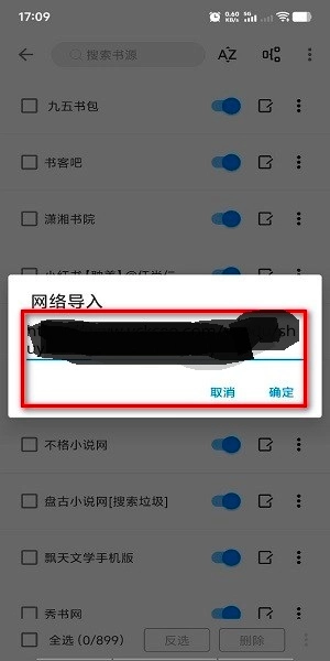 最后,勾选需要的书源,默认是全选,点击右下角的“确认”,书源就导入成功了。