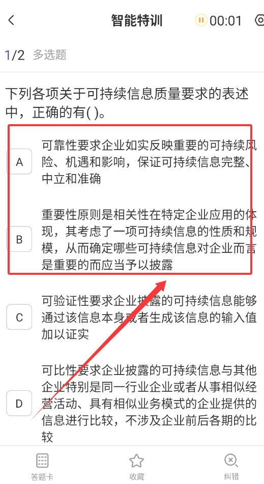 4、做题时遇到多选题等题型,可以查看详细解析和红色标注的易错选项,还能使用收藏纠错功能记录疑问呢。