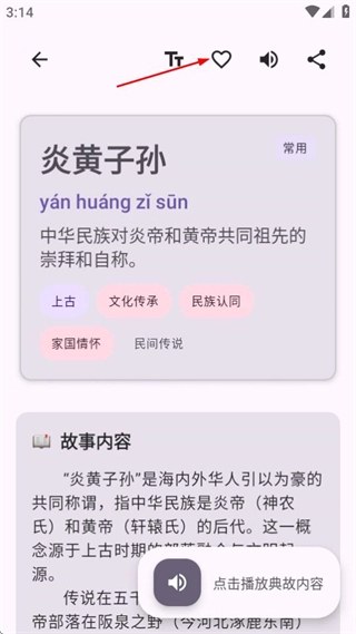 4、在详情页面,可通过对应功能按钮收藏典故内容。