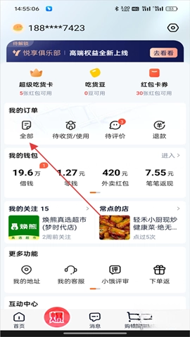 2、在个人中心选择“全部订单”,查看近期的配送记录。