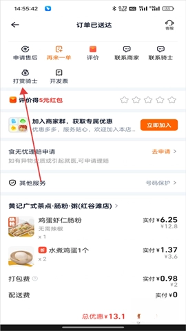 3、找到想要打赏骑手的订单,进入订单详情页。