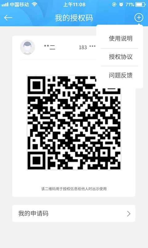 每个完成实名认证的用户都有自己专属的二维码,用户可以扫描该二维码将个人基本信息和信用评分授权给他人,并能在有效期内进行查看。