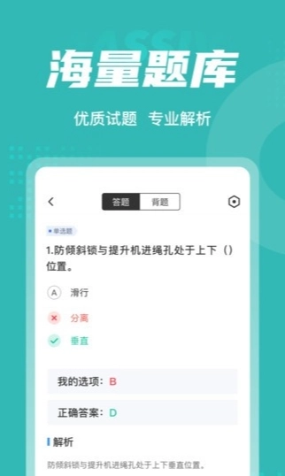 登高证考试聚题库收录了海量的登高证考试题目,涵盖理论知识与实操技能两大板块,助力用户全方位、体系化地梳理考试要点。该软件配备了模拟考试模块,使用户能在考前提前熟悉考试流程,从而提升考试通过的概率。此外,它还设有错题回顾功能,用户答错的题目会被系统自动归集到错题本里,便于用户随时查阅和巩固复习。计划参加登高证考试的朋友们,快到这款软件里学习吧!