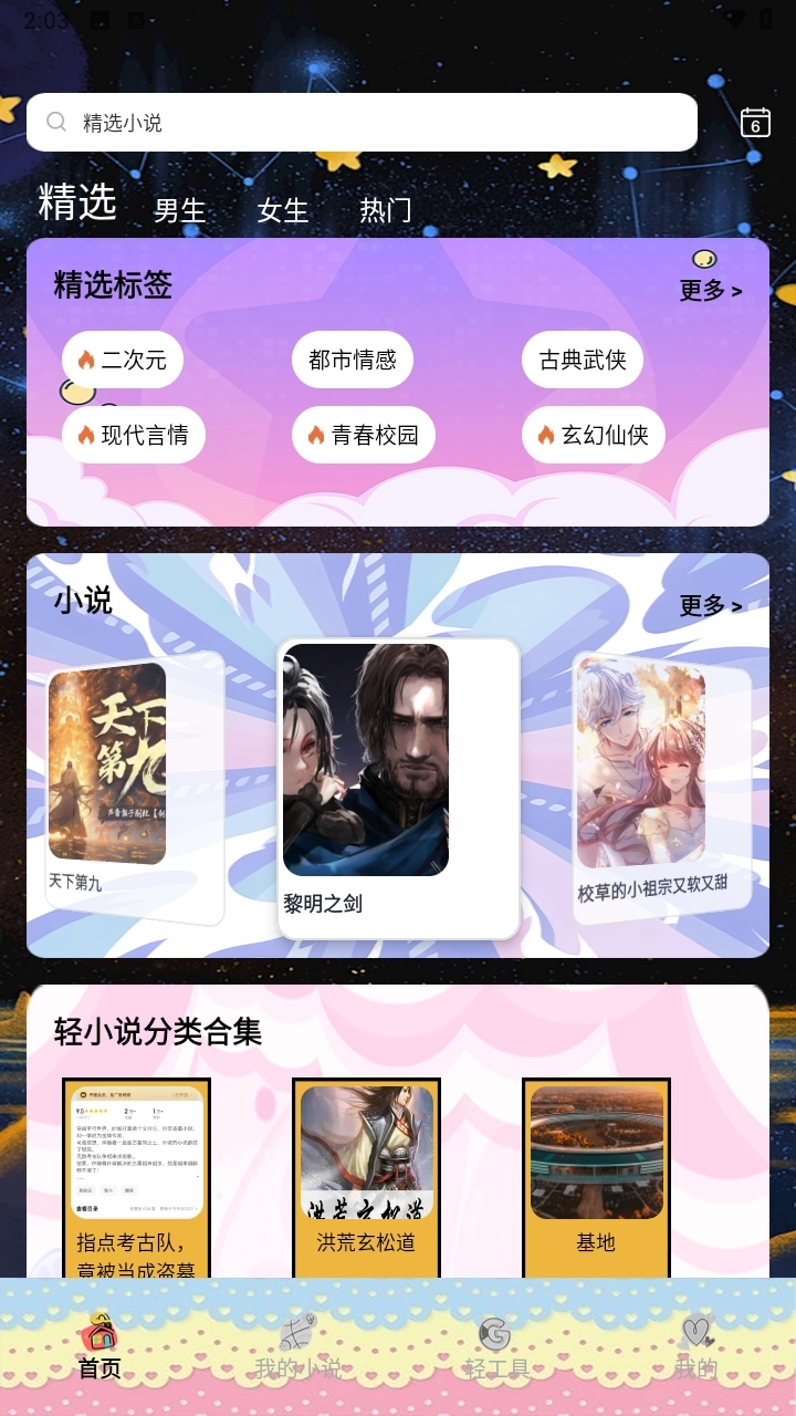 2.顺利进入首页后,各类不同分类的小说资源便会呈现眼前。