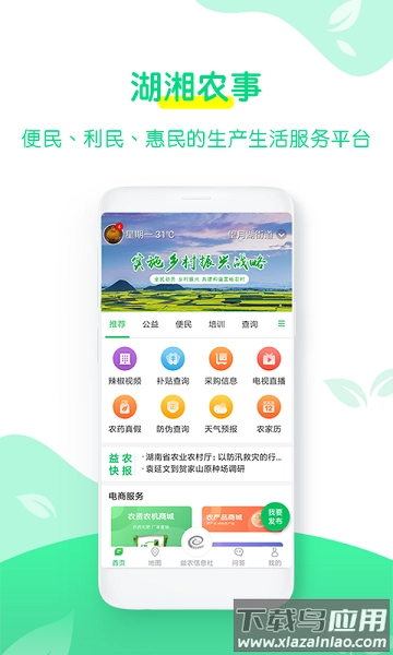 湖湘农事是一款聚焦农业服务领域的手机应用平台,为用户提供海量农业新闻资讯以及科普知识学习资料。用户既能在线掌握行业最新动态,也能加入社区互动环节,和其他用户分享种植经验与技术体会。这款应用旨在助力农民更科学地开展农业生产活动,提高务农的效率和收益,诚邀有相关需求的用户前来使用。