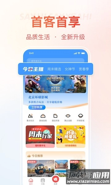 首客首享是一款聚焦高品质城市生活服务的手机应用,支持多城市线上提前预约,覆盖酒店住宿、票务购买以及精选购物等各类场景,力求为用户带来便捷且优质的服务体验,堪称日常出行的实用帮手。